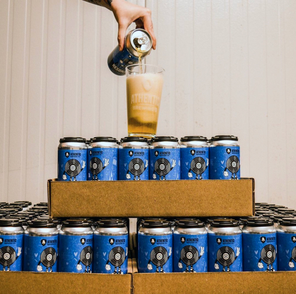The background icon and glyph illustrations on the beer label and promotional items are by Abby Deschits.