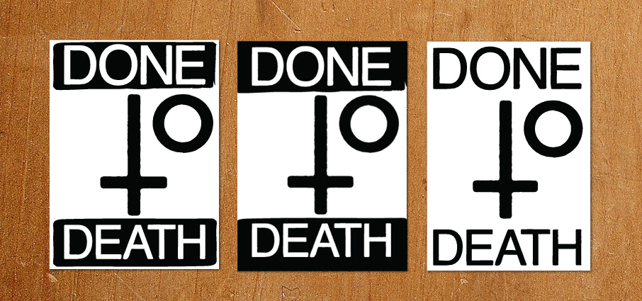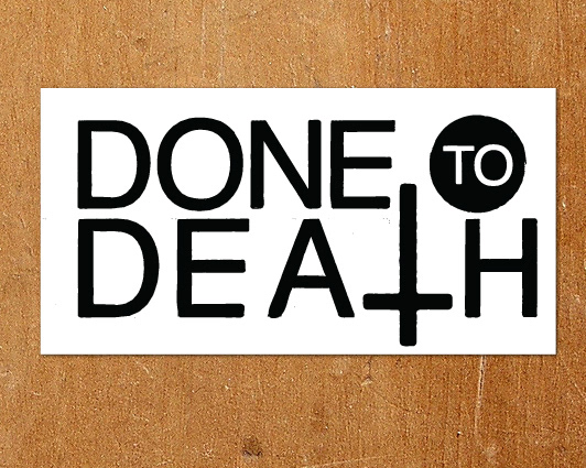 Chris Black's Done To Death, management and promotions company, needed vinyl stickers for tagging around. The top design was the final choice, but I wanted to share some of the other ideas.