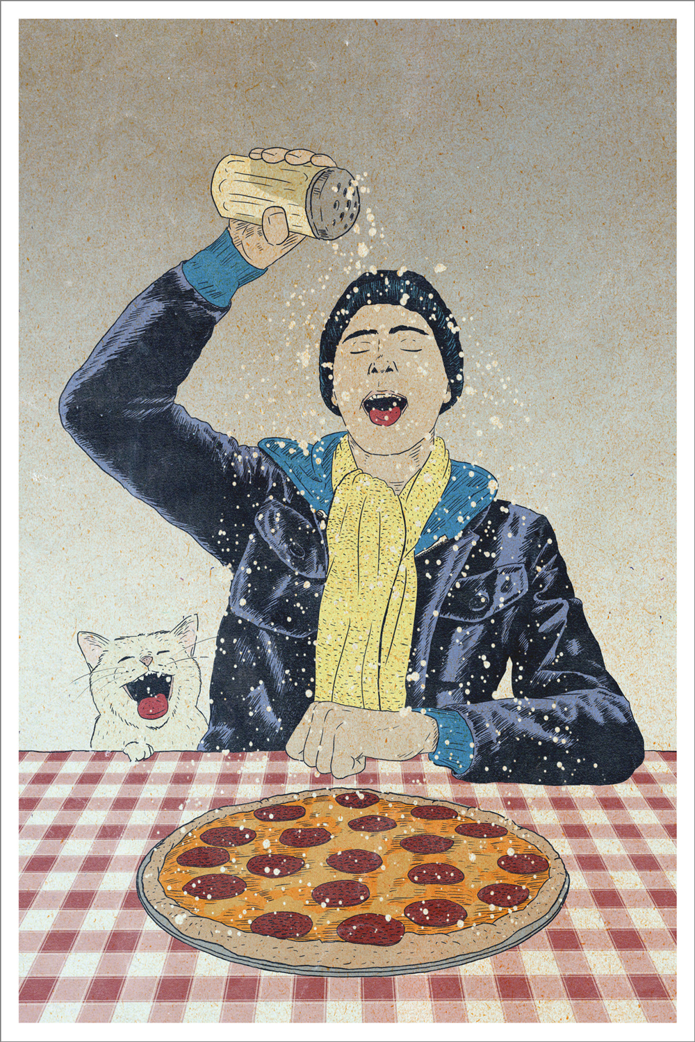 For the holidays I sent out 100 postcards to friends. I wanted something that really reflected what I loved... so... CATS & PIZZA!