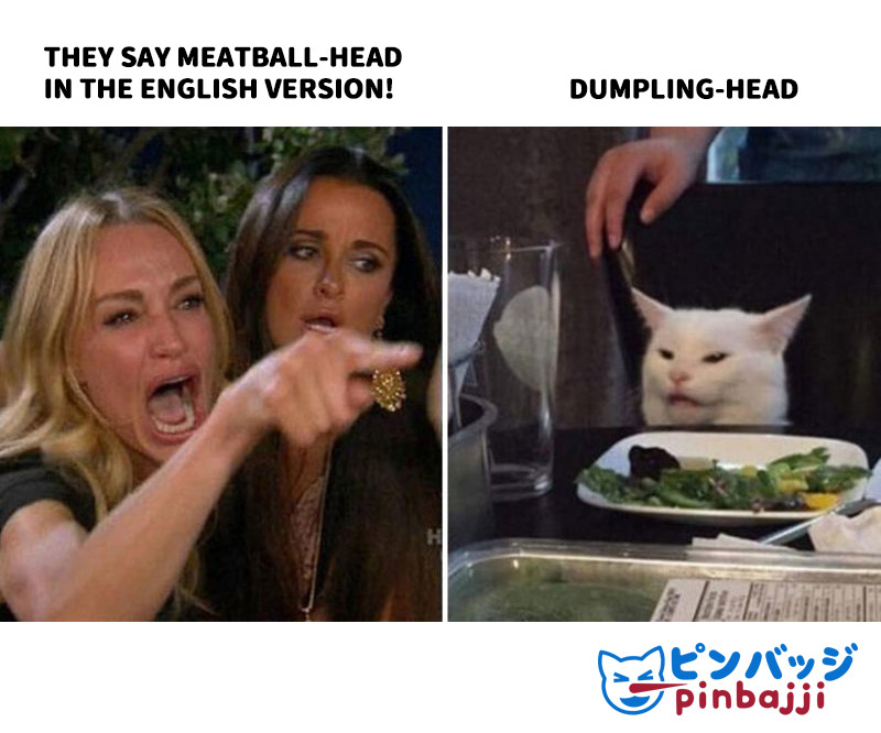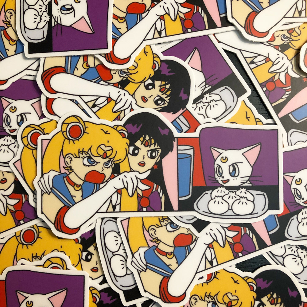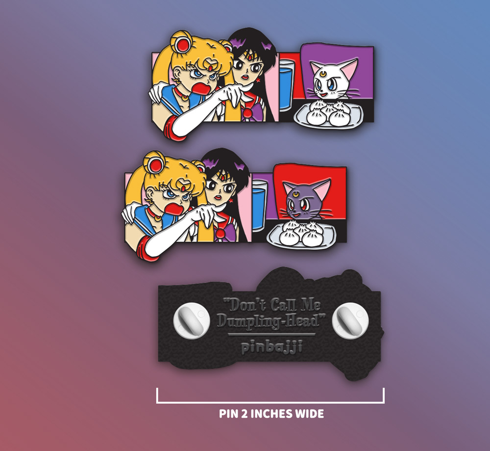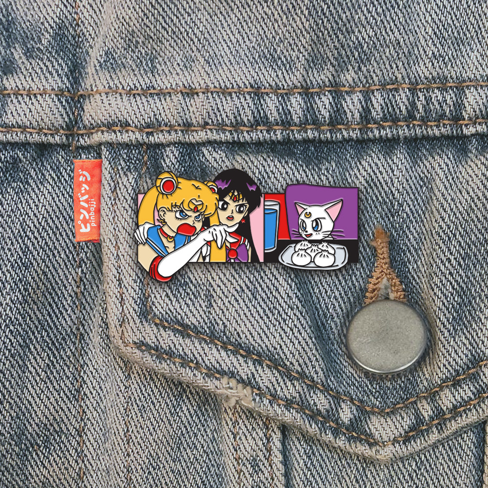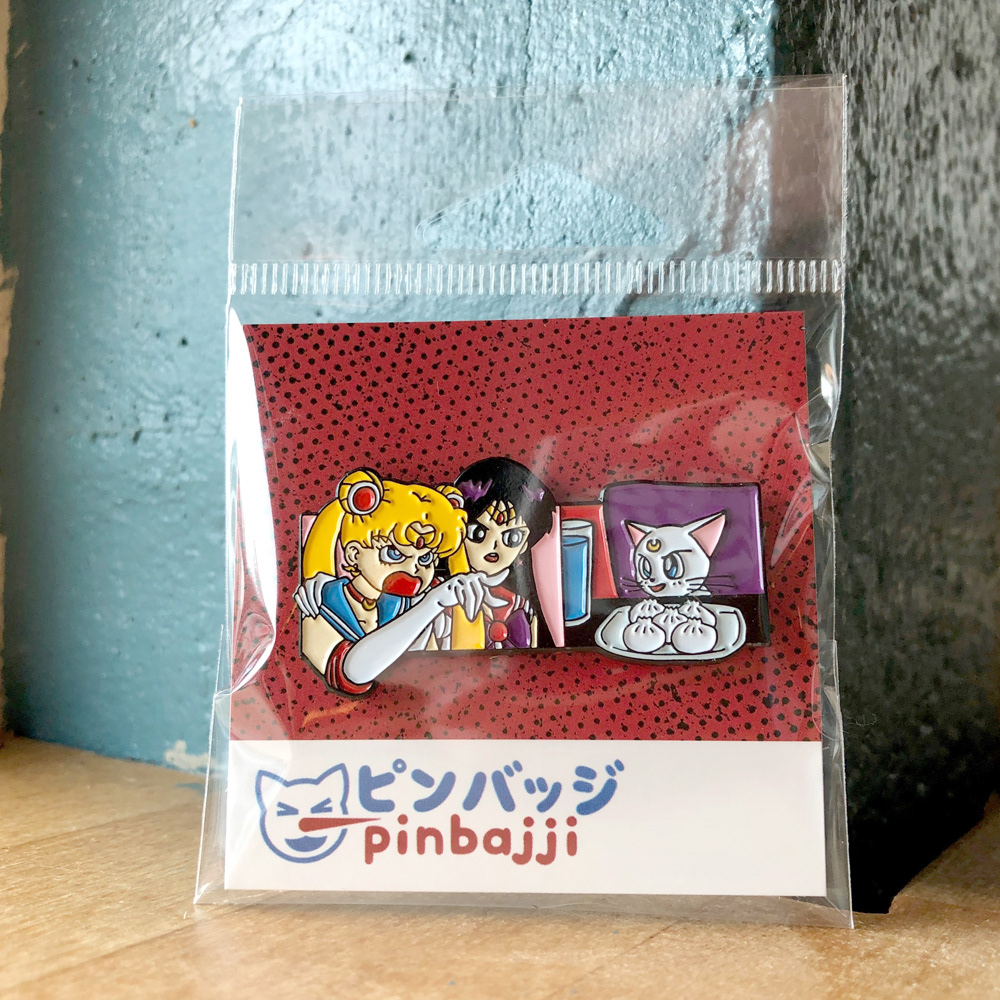 Enamel pin for Pinbajji based on the meme with a Real Housewives of Beverly Hills cast member yelling at Smudge the Cat. In this version Sailor Moon is yelling at Artemis (and also a variant of Luna).