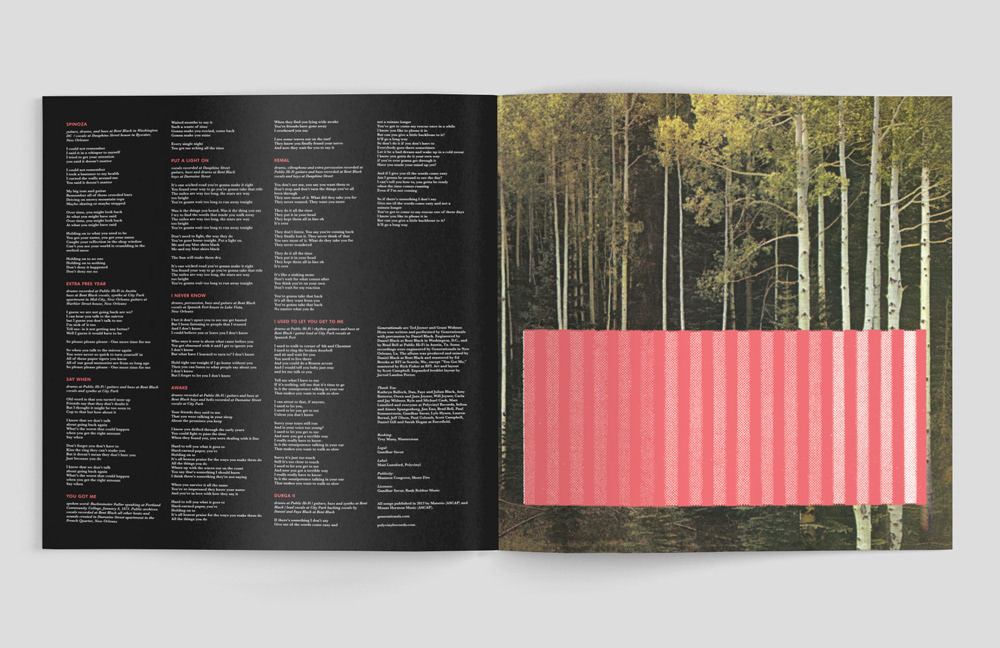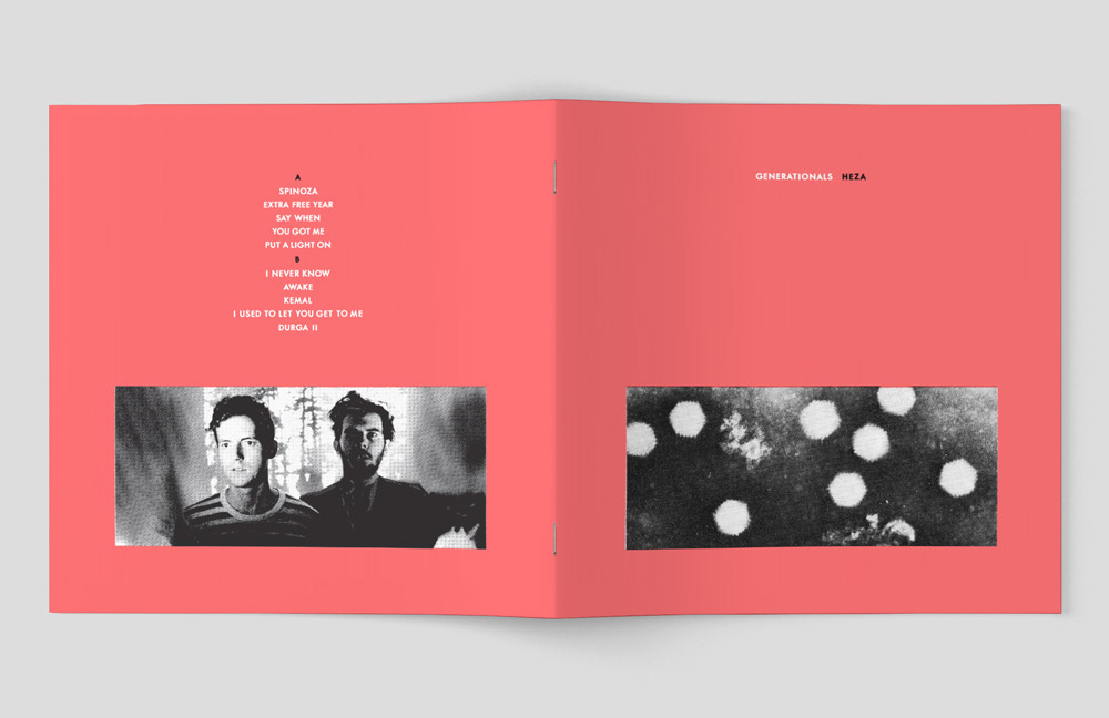Expanded booklet layout for the 10th Anniversary release of Generationals' Heza. Booklet collects art by designer Scott Campbell that was in the CD format, but not original vinyl release. Plus lyrics, band member notes, and behind the scenes photos.