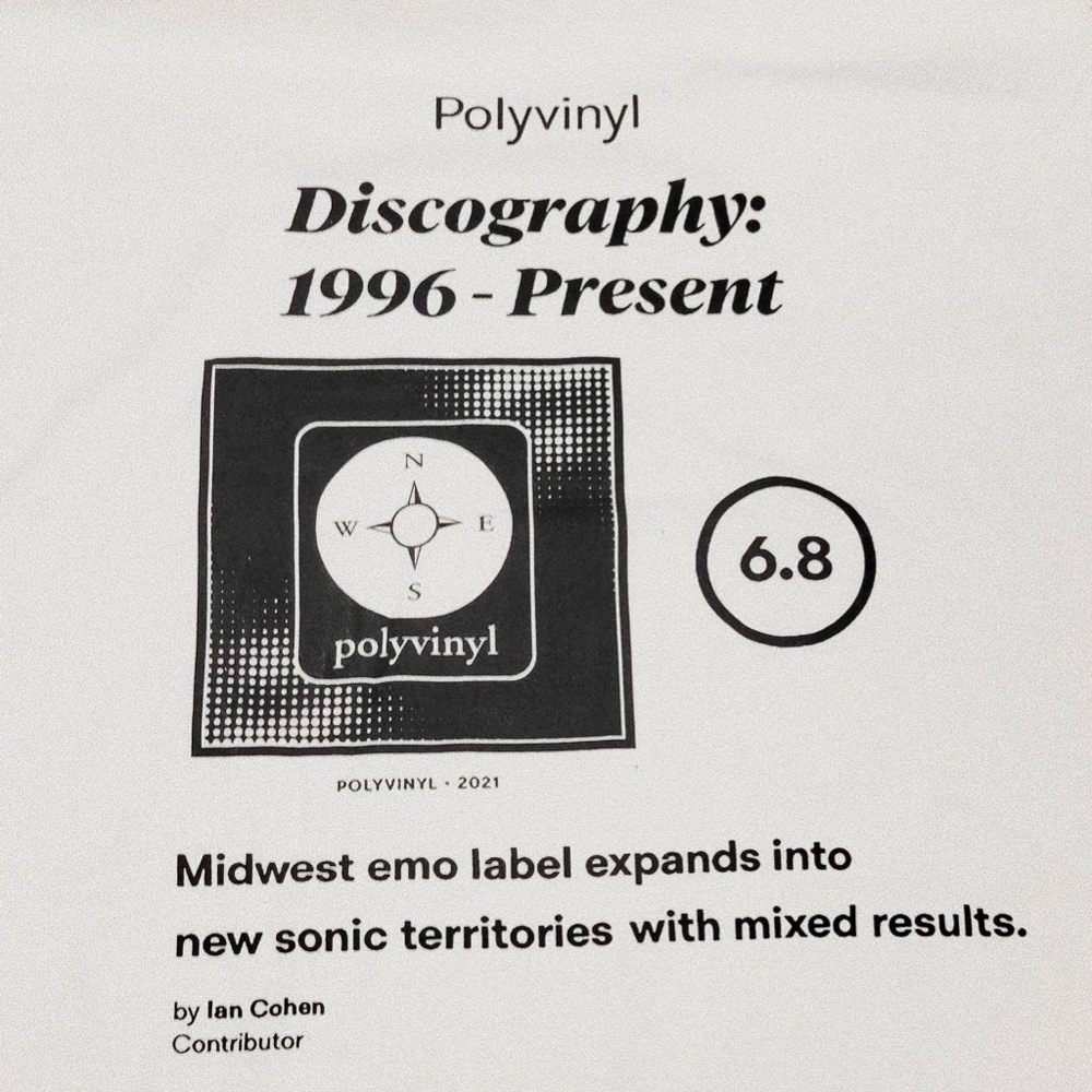 Joke shirt made for Polyvinyl Records to sell at the 2021 Pitchfork Fest. The shirt was so popular it sold out within hours. Luckily the label ran into someone with a DTG printing in the a Target parking lot that night and had more made for the next day. A black version was also made for online sales later.