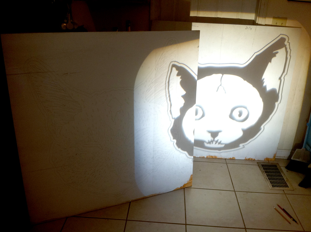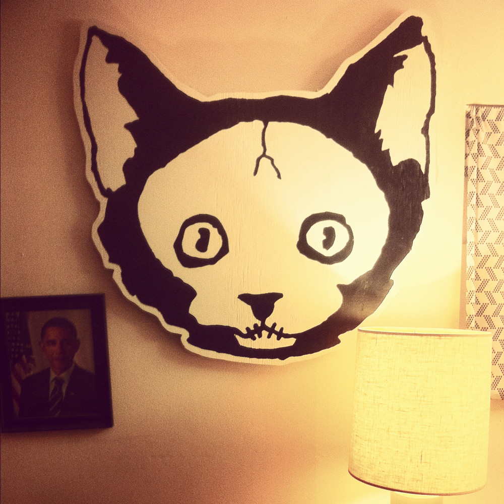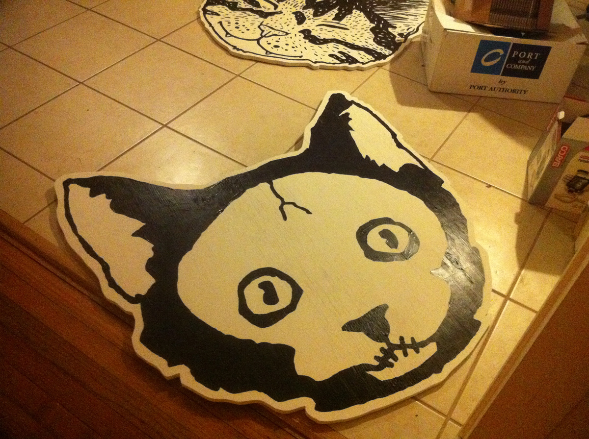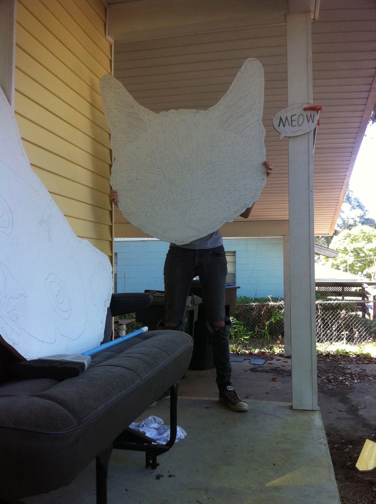 4' wooden cat head project for my friend and I to hang in our homes.